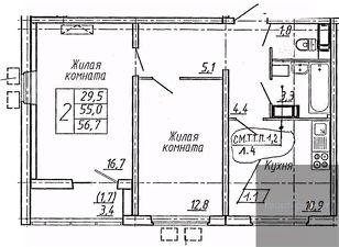 Квартира: 2 к 56,70 кв.м., 6 этаж в комплексе Яблоневые сады (ДСК), 1 очередь, корп.9, сдача: 2кв. , этажей: 19, адрес Воронеж г., Ломоносова ул., д. 129, Застройщик: ДСК.