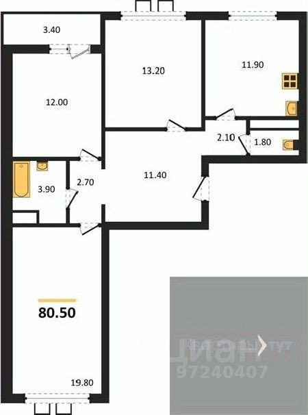 Квартира: 3 к 80,50 кв.м., 11 этаж в комплексе Яблоневые сады (ДСК), 1 очередь, корп.9, сдача: 2кв. , этажей: 19, адрес Воронеж г., Ломоносова ул., д. 129, Застройщик: ДСК.