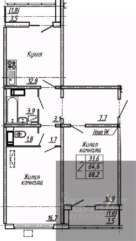 Квартира: 2 к 68,20 кв.м., 7 этаж в комплексе Яблоневые сады (ДСК), 1 очередь, корп.9, сдача: 2кв. , этажей: 19, адрес Воронеж г., Ломоносова ул., д. 129, Застройщик: ДСК.