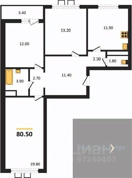 Квартира: 3 к 80,50 кв.м., 15 этаж в комплексе Яблоневые сады (ДСК), 1 очередь, корп.9, сдача: 2кв. , этажей: 19, адрес Воронеж г., Ломоносова ул., д. 129, Застройщик: ДСК.
