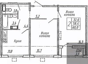 Квартира: 2 к 60,00 кв.м., 16 этаж в комплексе Яблоневые сады (ДСК), 1 очередь, корп.9, сдача: 2кв. , этажей: 19, адрес Воронеж г., Ломоносова ул., д. 129, Застройщик: ДСК.