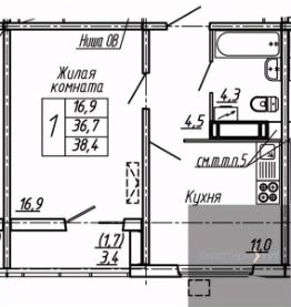 Квартира: 1 к 38,40 кв.м., 2 этаж в комплексе Яблоневые сады (ДСК), 1 очередь, корп.9, сдача: 4кв. , этажей: 19, адрес Воронеж г., Ломоносова ул., д. 129, Застройщик: ДСК.