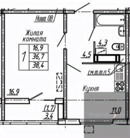 Квартира: 1 к 38,40 кв.м., 7 этаж в комплексе Яблоневые сады (ДСК), 1 очередь, корп.9, сдача: 2кв. , этажей: 19, адрес Воронеж г., Ломоносова ул., д. 129, Застройщик: ДСК.