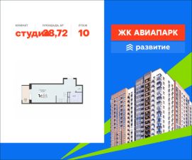 В продаже квартира площадью 28.72 кв. м с отделкой. Квартира расположена на 10 этаже 18 этажного дома, в новом жилом квартале "Авиапарк".