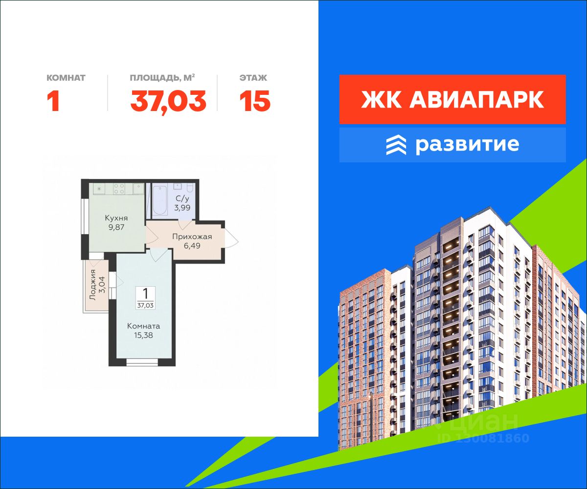 В продаже квартира площадью 37.03 кв. м с отделкой. Квартира расположена на 15 этаже 16 этажного дома, в новом жилом квартале "Авиапарк".