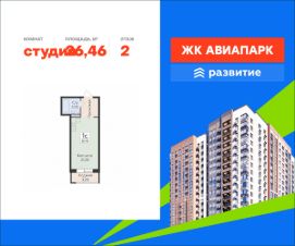 В продаже квартира площадью 26.46 кв. м с черновой отделкой. Квартира расположена на 2 этаже 16 этажного дома, в новом жилом квартале "Авиапарк".