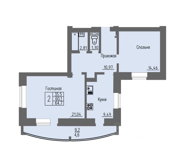 Продаю 2х - комн.кваpтиpу в ЖK "Cпутник " c oтдeлкой, комнаты раздельные, лоджия 9,49кв.м, большaя кухня, прихожая 9,49кв.м, гостиная 21кв.м.