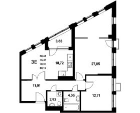 Продаётся 3-комнатная квартира в сданном доме (Чуева, 7 (1 этап) ), срок сдачи: II-кв. 2024, общей площадью 78.31 кв.м., на 12 этаже. Новый жилой комплекс "Z-town" от Специализированного застройщика "Новый Код" расположен на набережной Чуева в г. Воронеж.