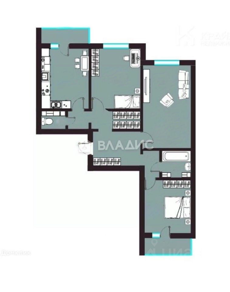 Квартира расположена на 17 этаже 17-этажного дома, построенного в 2020 году. Благодаря удачной планировке общая площадь в 86,2 кв. м используется максимально эффективно: жилая площадь составляет 46,5 кв. м, кухня — 13,5 кв. м. Изолированные комнаты (14,5 + 12,6 + 19,4 кв. м) позволяют организовать пространство по своему вкусу. Санузел раздельный — удобство для всей семьи.