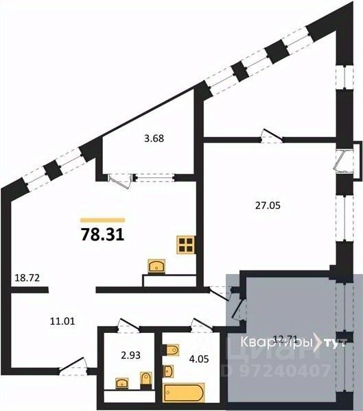 Квартира: 2 к 78,31 кв.м., 12 этаж в комплексе Z-town, 1 очередь, корп.1, сдача: 2кв. , этажей: 21, адрес Воронеж г., Чуева наб., д. 7, Застройщик: Новый код.