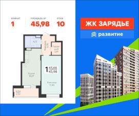 В продаже квартира площадью 45.98 кв. м с черновой отделкой. Квартира расположена на 10 этаже 23 этажного дома, в новом микрорайоне комфорт-класса "Зарядье" (Девелопер - ГК "Развитие").