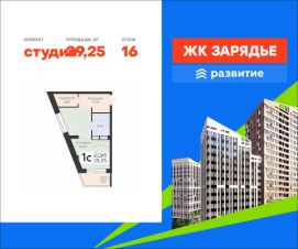 В продаже квартира площадью 29.25 кв. м с черновой отделкой. Квартира расположена на 16 этаже 23 этажного дома, в новом микрорайоне комфорт-класса "Зарядье" (Девелопер - ГК "Развитие").