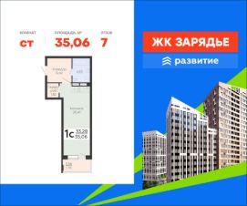 В продаже квартира площадью 35.06 кв. м с черновой отделкой. Квартира расположена на 7 этаже 23 этажного дома, в новом микрорайоне комфорт-класса "Зарядье" (Девелопер - федеральный застройщик ГК "Развитие").