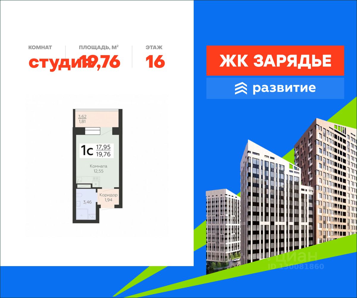 В продаже квартира площадью 19.76 кв. м с черновой отделкой. Квартира расположена на 16 этаже 25 этажного дома, в новом микрорайоне комфорт-класса "Зарядье" (Девелопер - ГК "Развитие").