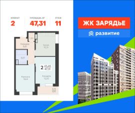 В продаже квартира площадью 47.31 кв. м с черновой отделкой. Квартира расположена на 11 этаже 13 этажного дома, в новом микрорайоне комфорт-класса "Зарядье" (Девелопер - ГК "Развитие").