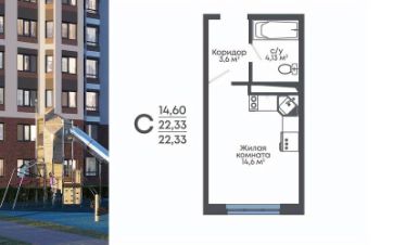 Общая площадь22,33 м²