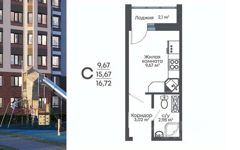 Продаётся студия в строящемся доме (Блок-секция 1), срок сдачи: IV-кв. 2025, общей площадью 16.72 кв.м., на 15 этаже. ЖК "8 Элемент" - это 3 отдельно стоящих 15-этажных домов (дома из железобетонных блоков) с современными, уютными, просторными квартирами в микрорайоне с развитой инфраструктурой