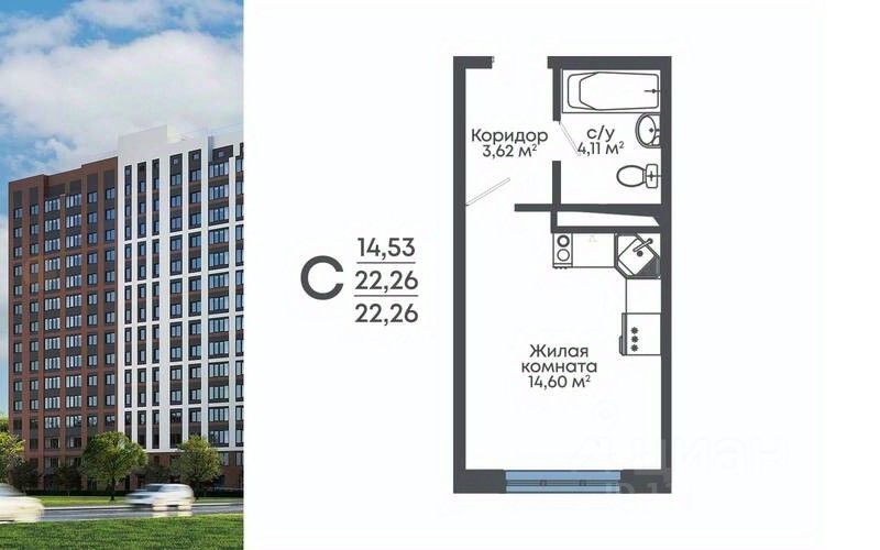 Продаётся студия в строящемся доме (Блок-секция 1), срок сдачи: IV-кв. 2025, общей площадью 22.26 кв.м., на 2 этаже. ЖК "8 Элемент" - это 3 отдельно стоящих 15-этажных домов (дома из железобетонных блоков) с современными, уютными, просторными квартирами в микрорайоне с развитой инфраструктурой