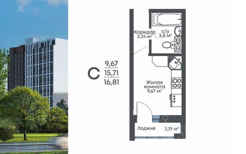 Продаётся студия в строящемся доме (Блок-секция 3), срок сдачи: IV-кв. 2025, общей площадью 16.81 кв.м., на 15 этаже. ЖК "8 Элемент" - это 3 отдельно стоящих 15-этажных домов (дома из железобетонных блоков) с современными, уютными, просторными квартирами в микрорайоне с развитой инфраструктурой