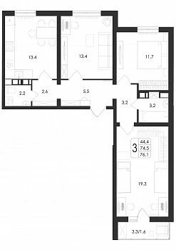 Продаётся 3-комнатная квартира в строящемся доме (Позиция 61), срок сдачи: IV-кв. 2025, общей площадью 76.1 кв.м., на 4 этаже. Расположение, транспортная доступность