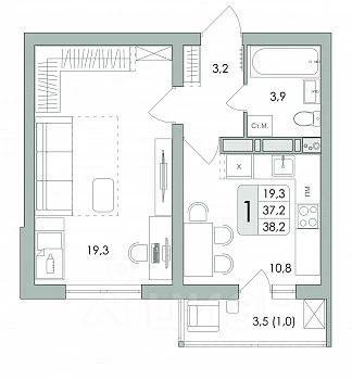 Продаётся 1-комнатная квартира в строящемся доме (Позиция 49), срок сдачи: IV-кв. 2025, общей площадью 38.2 кв.м., на 7 этаже. Расположение, транспортная доступность