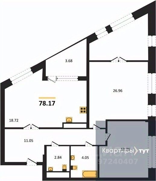 Квартира: 2 к 78,17 кв.м., 6 этаж в комплексе Z-town, 1 очередь, корп.1, сдача: 2кв. , этажей: 21, адрес Воронеж г., Чуева наб., д. 7, Застройщик: Новый код.