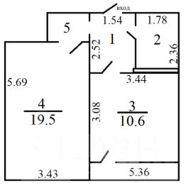 •Лоджия (3.35х1.6) (5.36 кв.м), выходящая во двор.