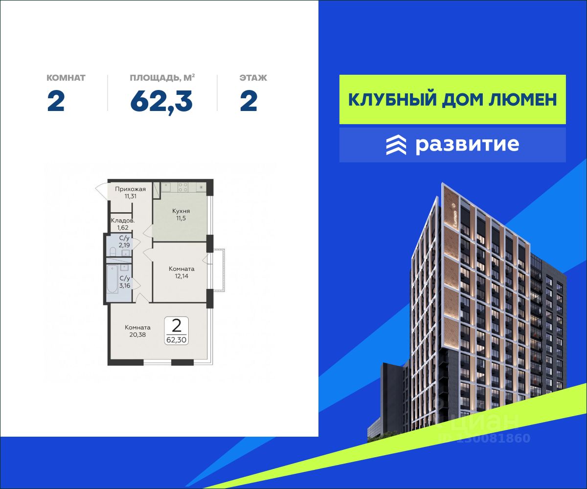 Продается двухкомнатная квартира 3 в новостройке Клубный дом "Люмен" по адресу Воронежская область, Воронеж, пр-т Труда, д. 117. Общая площадь квартиры - 62.30 кв. м., этаж 2 из 17, секция 1. Тип проекта, по которому построен дом - монолит, компания-застройщик - ООО "ГК "Развитие". Стоимость квартиры - 8005550 Р. Срок сдачи - 4 квартал 2027. Более подробная информация по телефону.