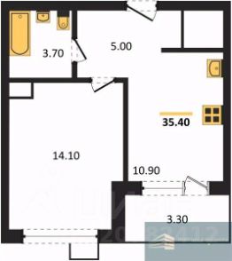 Квартира: 1 к 35,40 кв.м., 8 этаж в комплексе Ритм, 1 очередь, корп.1 (секции 3-4), сдача: 2кв. , этажей: 13, адрес Воронеж г., Содружества бул., д. 6, Застройщик: Инвестжилстрой.
