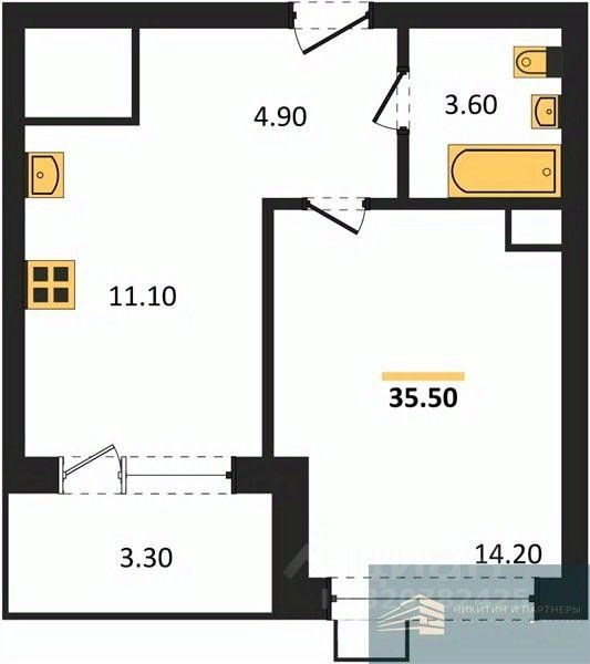 Квартира: 1 к 35,40 кв.м., 9 этаж в комплексе Ритм, 1 очередь, корп.1 (секции 3-4), сдача: 2кв. , этажей: 13, адрес Воронеж г., Содружества бул., д. 6, Застройщик: Инвестжилстрой.