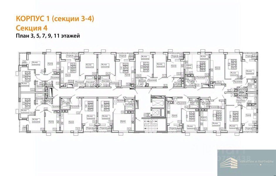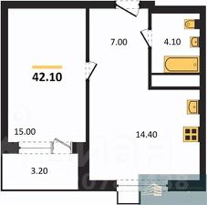 Квартира: 1 к 42,10 кв.м., 9 этаж в комплексе Ритм, 1 очередь, корп.1 (секции 3-4), сдача: 2кв. , этажей: 13, адрес Воронеж г., Содружества бул., д. 6, Застройщик: Инвестжилстрой.