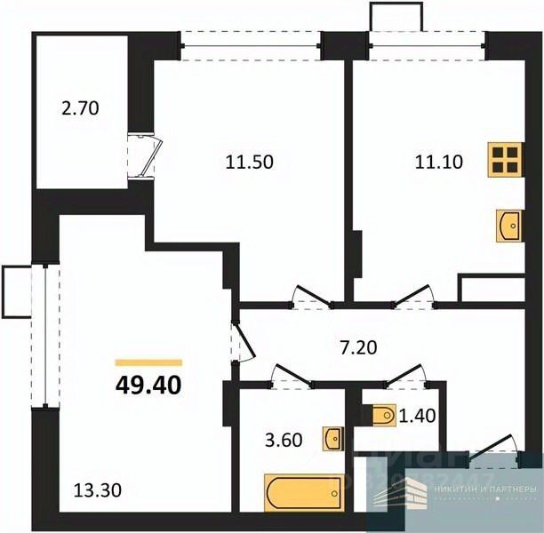 Квартира: 2 к 49,40 кв.м., 10 этаж в комплексе Ритм, 1 очередь, корп.1 (секции 3-4), сдача: 2кв. , этажей: 13, адрес Воронеж г., Содружества бул., д. 6, Застройщик: Инвестжилстрой.