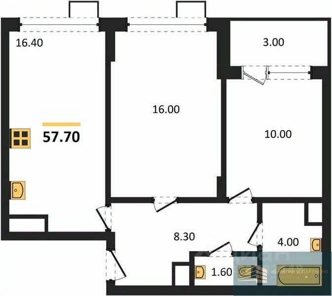 Квартира: 2 к 57,70 кв.м., 6 этаж в комплексе Ритм, 1 очередь, корп.1 (секции 3-4), сдача: 2кв. , этажей: 13, адрес Воронеж г., Содружества бул., д. 6, Застройщик: Инвестжилстрой.