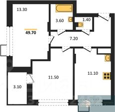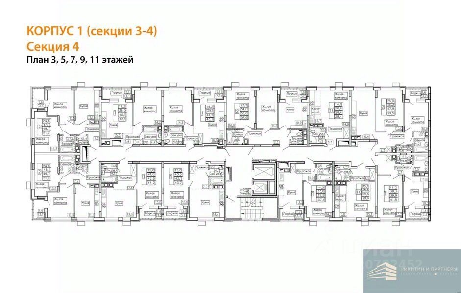 Квартира: 2 к 49,60 кв.м., 7 этаж в комплексе Ритм, 1 очередь, корп.1 (секции 3-4), сдача: 2кв. , этажей: 13, адрес Воронеж г., Содружества бул., д. 6, Застройщик: Инвестжилстрой.