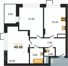 Квартира: 2 к 49,60 кв.м., 9 этаж в комплексе Ритм, 1 очередь, корп.1 (секции 3-4), сдача: 2кв. , этажей: 13, адрес Воронеж г., Содружества бул., д. 6, Застройщик: Инвестжилстрой.