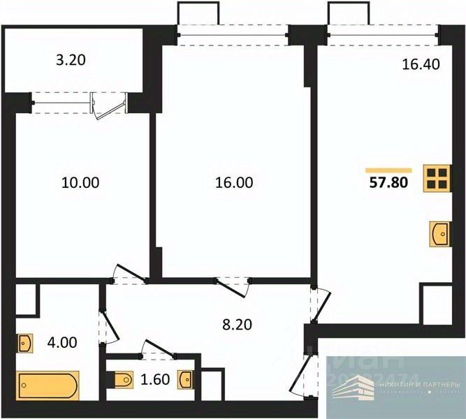 Квартира: 2 к 57,80 кв.м., 8 этаж в комплексе Ритм, 1 очередь, корп.1 (секции 3-4), сдача: 2кв. , этажей: 13, адрес Воронеж г., Содружества бул., д. 6, Застройщик: Инвестжилстрой.