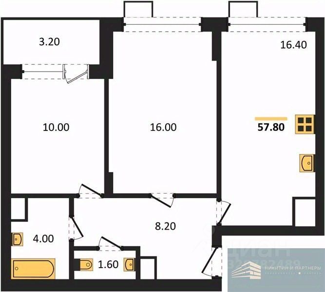 Квартира: 2 к 57,80 кв.м., 6 этаж в комплексе Ритм, 1 очередь, корп.1 (секции 3-4), сдача: 2кв. , этажей: 13, адрес Воронеж г., Содружества бул., д. 6, Застройщик: Инвестжилстрой.