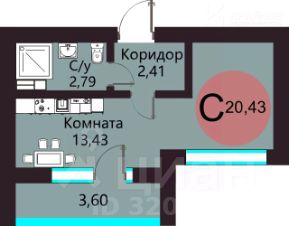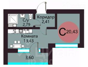 Зонированная комната площадью 13,43 кв.м., в которой можно обустроить личный уютный уголок. Прихожая с зоной для хранения вещей.