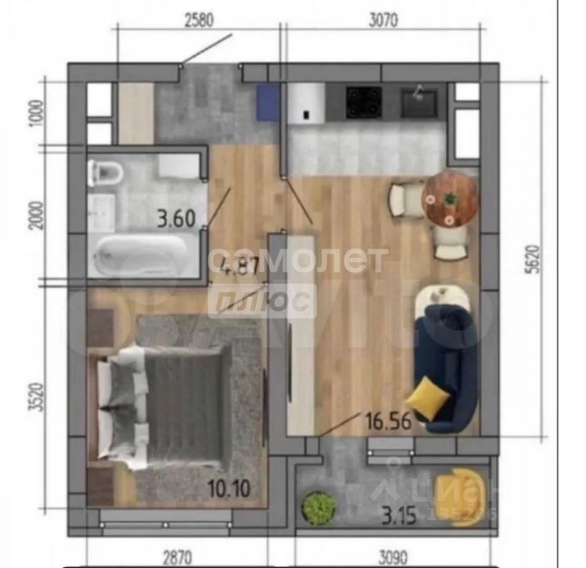 Светлая, уютная спальня выполнена в пастельных тонах, просторная кухня-гостиная, С/У совмещен, отделан керамической плиткой, большая застекленная лоджия, позволяющая разместить зону отдыха.