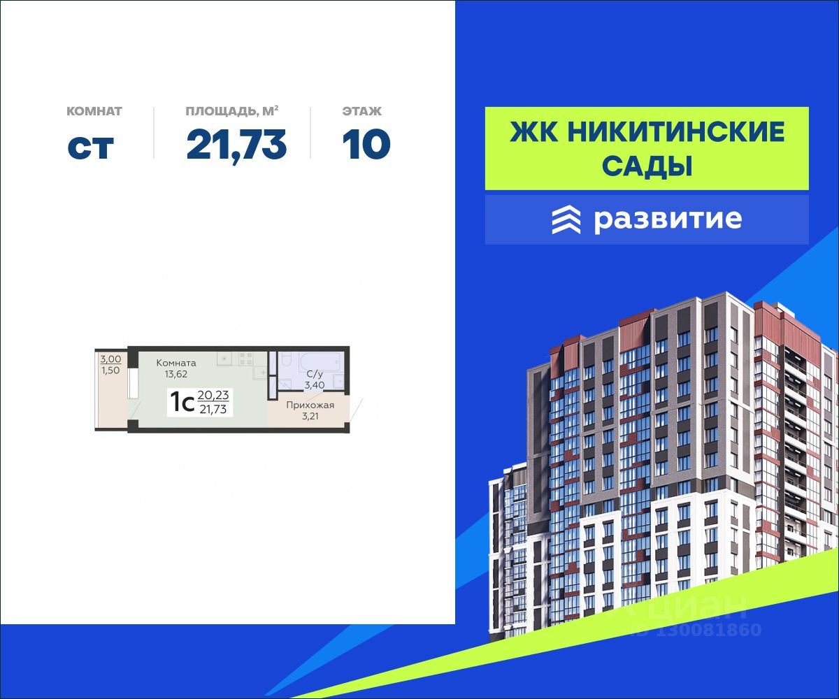 "Никитинские сады" - это новое пространство, которое объединяет в себе современный внешний вид и атмосферу природного уюта. Жилой комплекс включает в себя 4 20-этажных корпуса, 1090 квартир различных планировок, множество общественных пространств для отдыха и собственную инфраструктуру. Наслаждайтесь всеми преимуществами города в окружении живописной природы!