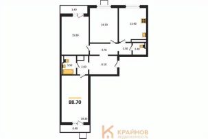 Квартира: 3 к 88,70 кв.м., 12 этаж в комплексе Май, 1 очередь, корп.1, сдача: 4кв. , этажей: 17, адрес Воронеж г., Патриотов пр., , Застройщик: ВЫБОР.