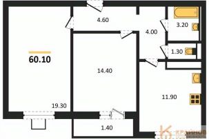 Квартира: 2 к 60,10 кв.м., 16 этаж в комплексе Май, 1 очередь, корп.1, сдача: 2кв. , этажей: 17, адрес Воронеж г., Патриотов пр., , Застройщик: ВЫБОР.