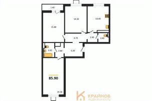 Квартира: 3 к 85,90 кв.м., 13 этаж в комплексе Май, 1 очередь, корп.1, сдача: 4кв. , этажей: 17, адрес Воронеж г., Патриотов пр., , Застройщик: ВЫБОР.