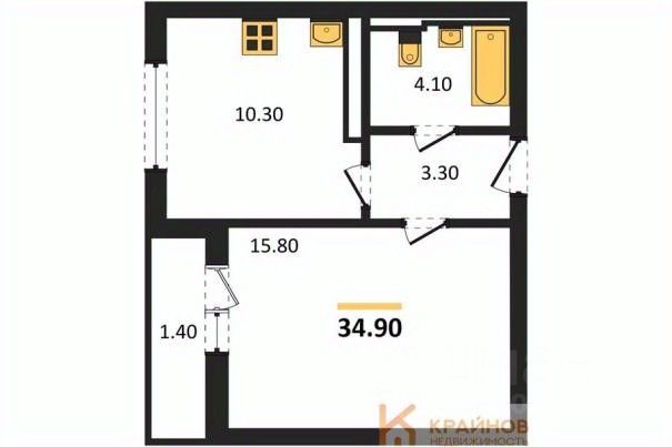 Квартира: 1 к 34,90 кв.м., 5 этаж в комплексе Май, 1 очередь, корп.1, сдача: 4кв. , этажей: 17, адрес Воронеж г., Патриотов пр., , Застройщик: ВЫБОР.