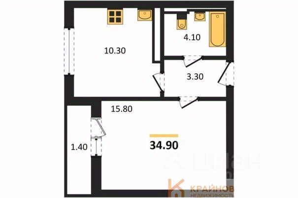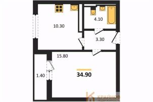Квартира: 1 к 34,90 кв.м., 8 этаж в комплексе Май, 1 очередь, корп.1, сдача: 4кв. , этажей: 17, адрес Воронеж г., Патриотов пр., , Застройщик: ВЫБОР.
