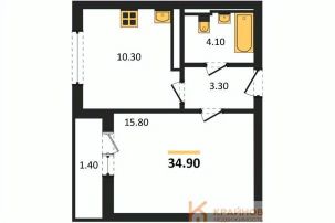 Квартира: 1 к 34,90 кв.м., 12 этаж в комплексе Май, 1 очередь, корп.1, сдача: 4кв. , этажей: 17, адрес Воронеж г., Патриотов пр., , Застройщик: ВЫБОР.