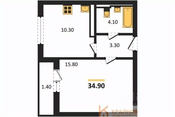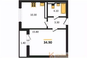 Квартира: 1 к 34,90 кв.м., 14 этаж в комплексе Май, 1 очередь, корп.1, сдача: 4кв. , этажей: 17, адрес Воронеж г., Патриотов пр., , Застройщик: ВЫБОР.
