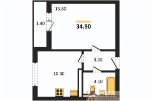 Квартира: 1 к 34,90 кв.м., 15 этаж в комплексе Май, 1 очередь, корп.1, сдача: 4кв. , этажей: 17, адрес Воронеж г., Патриотов пр., , Застройщик: ВЫБОР.