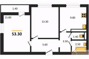 Квартира: 2 к 53,30 кв.м., 11 этаж в комплексе Май, 1 очередь, корп.1, сдача: 4кв. , этажей: 17, адрес Воронеж г., Патриотов пр., , Застройщик: ВЫБОР.