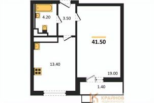 Квартира: 1 к 41,50 кв.м., 10 этаж в комплексе Май, 1 очередь, корп.1, сдача: 4кв. , этажей: 17, адрес Воронеж г., Патриотов пр., , Застройщик: ВЫБОР.